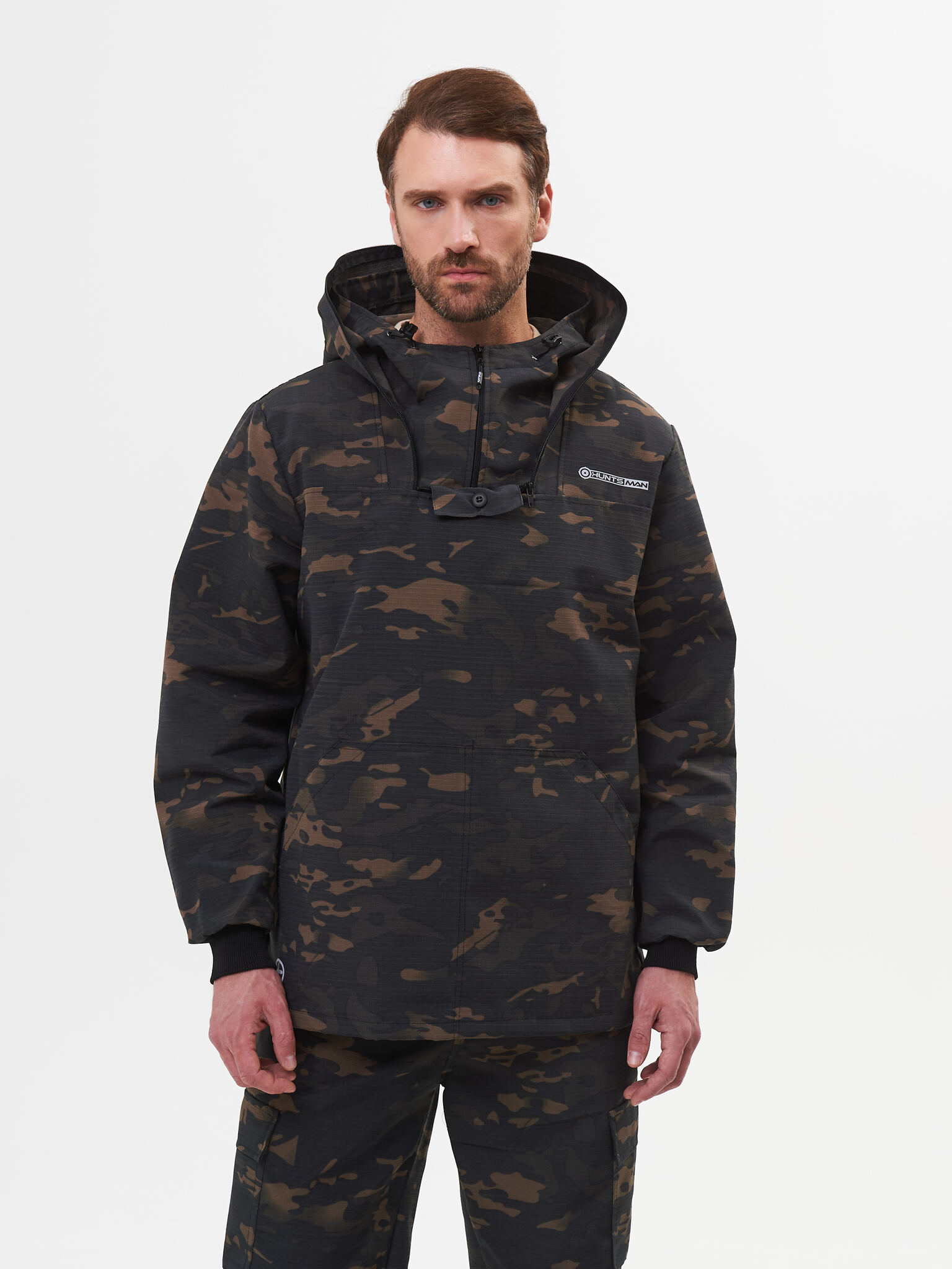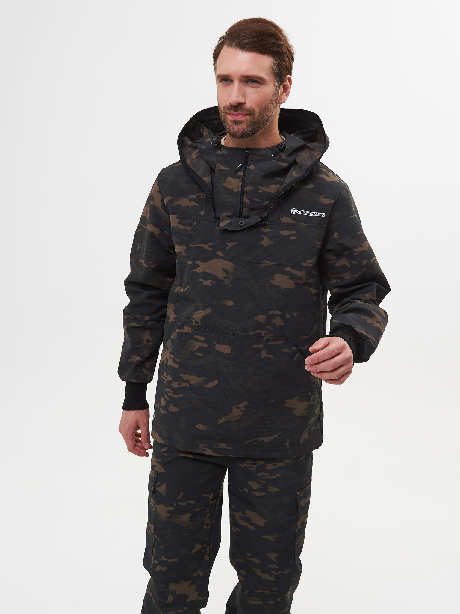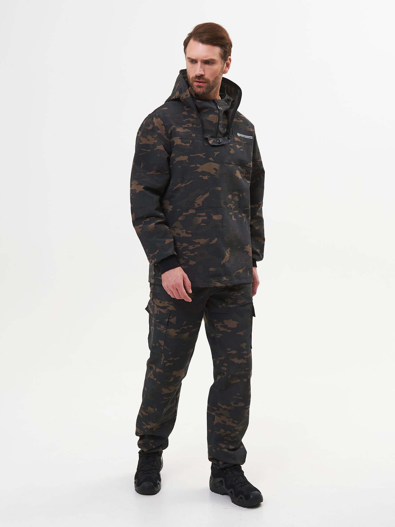 Состоит из куртки и брюк. Куртка с капюшоном и противомоскитной сеткой, убираемой в потайной нагрудный карман. В костюме нет ловушек, юбки и пыльников.