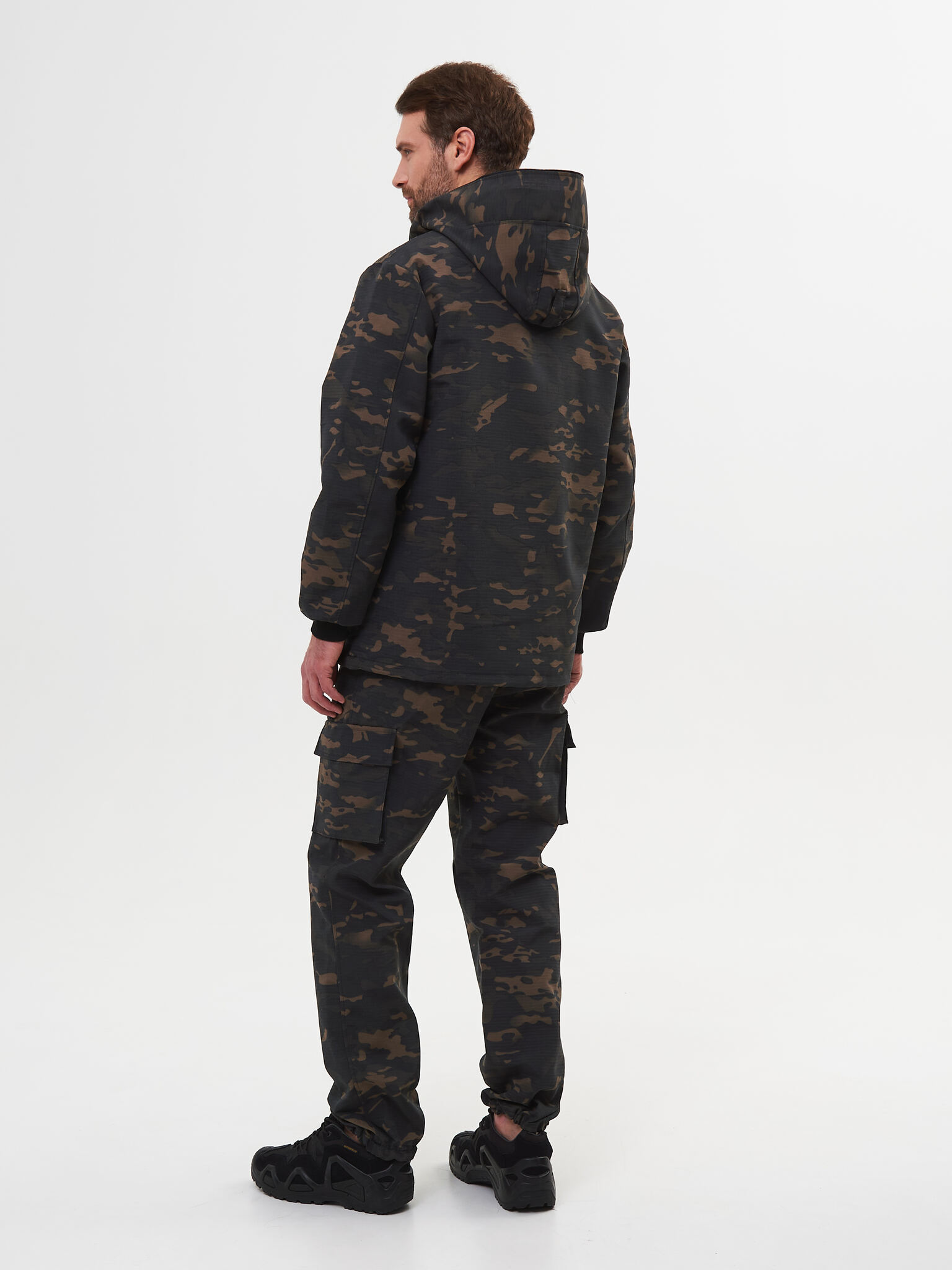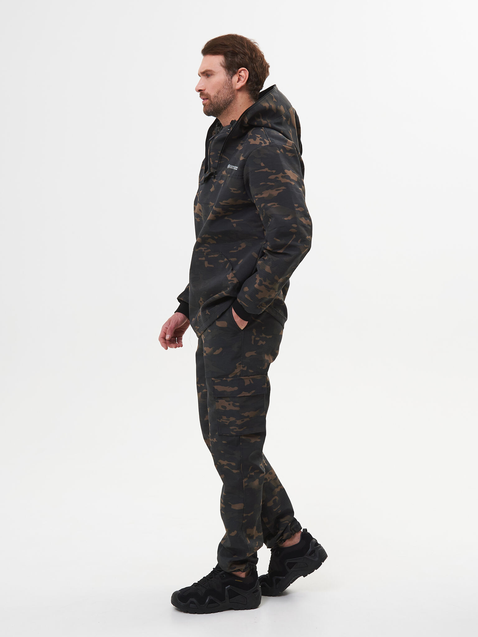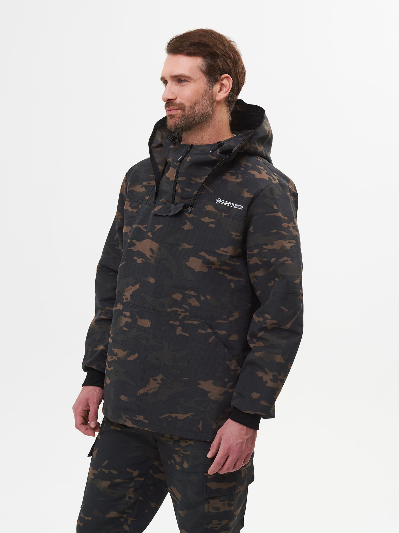 Состоит из куртки и брюк. Куртка с капюшоном и противомоскитной сеткой, убираемой в потайной нагрудный карман. В костюме нет ловушек, юбки и пыльников.