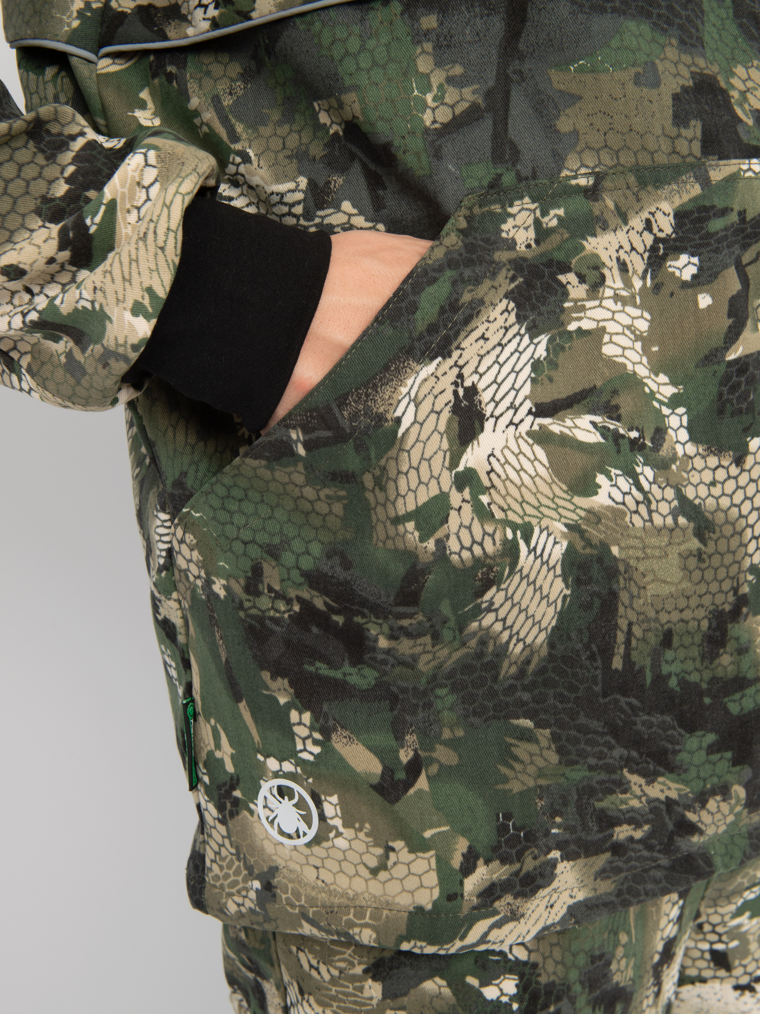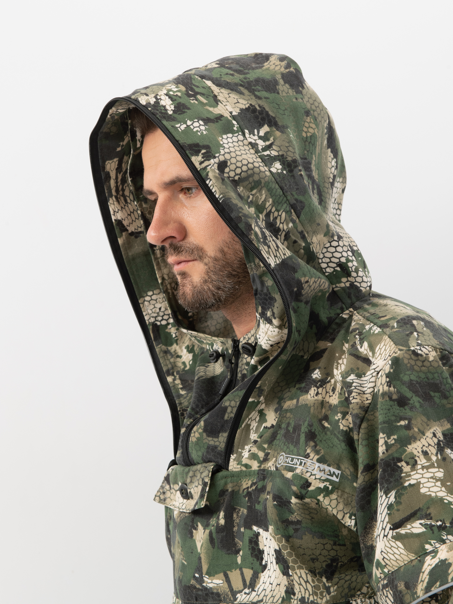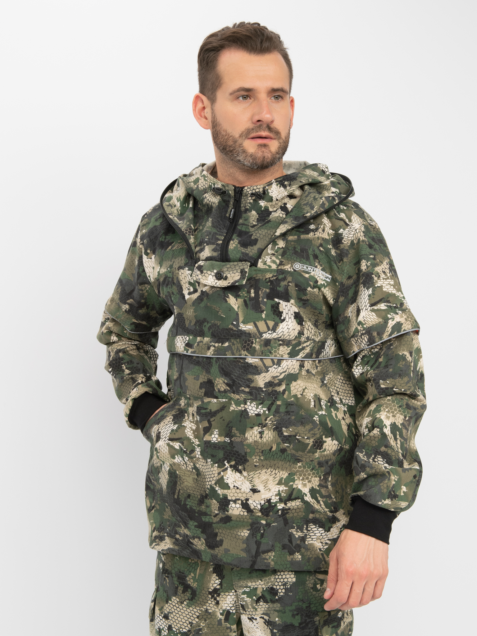 Состоит из куртки и брюк. Куртка с капюшоном и противомоскитной сеткой, убираемой в потайной нагрудный карман. Костюм дополнительно оснащен противоклещевыми ловушками, "юбкой" для исключения доступа к телу для насекомых и пыльников на брюках.