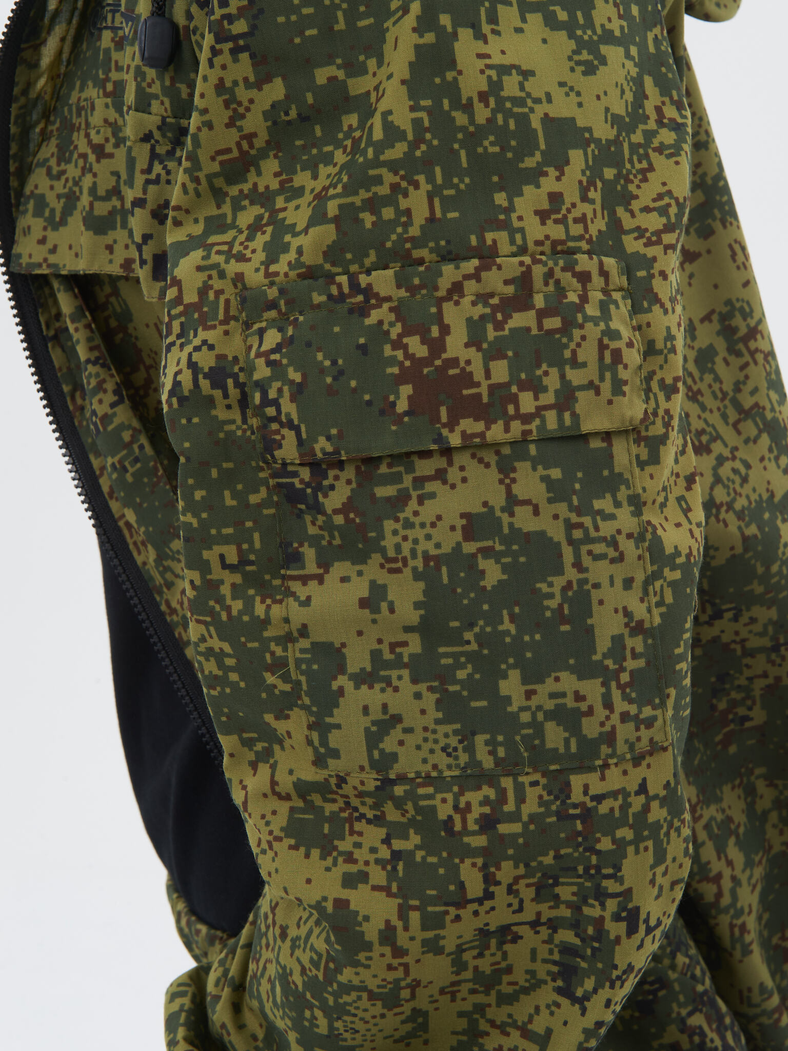 - два накладных кармана с клапанами на груди, застегиваются на липучку, два боковых - прорезных с листочками