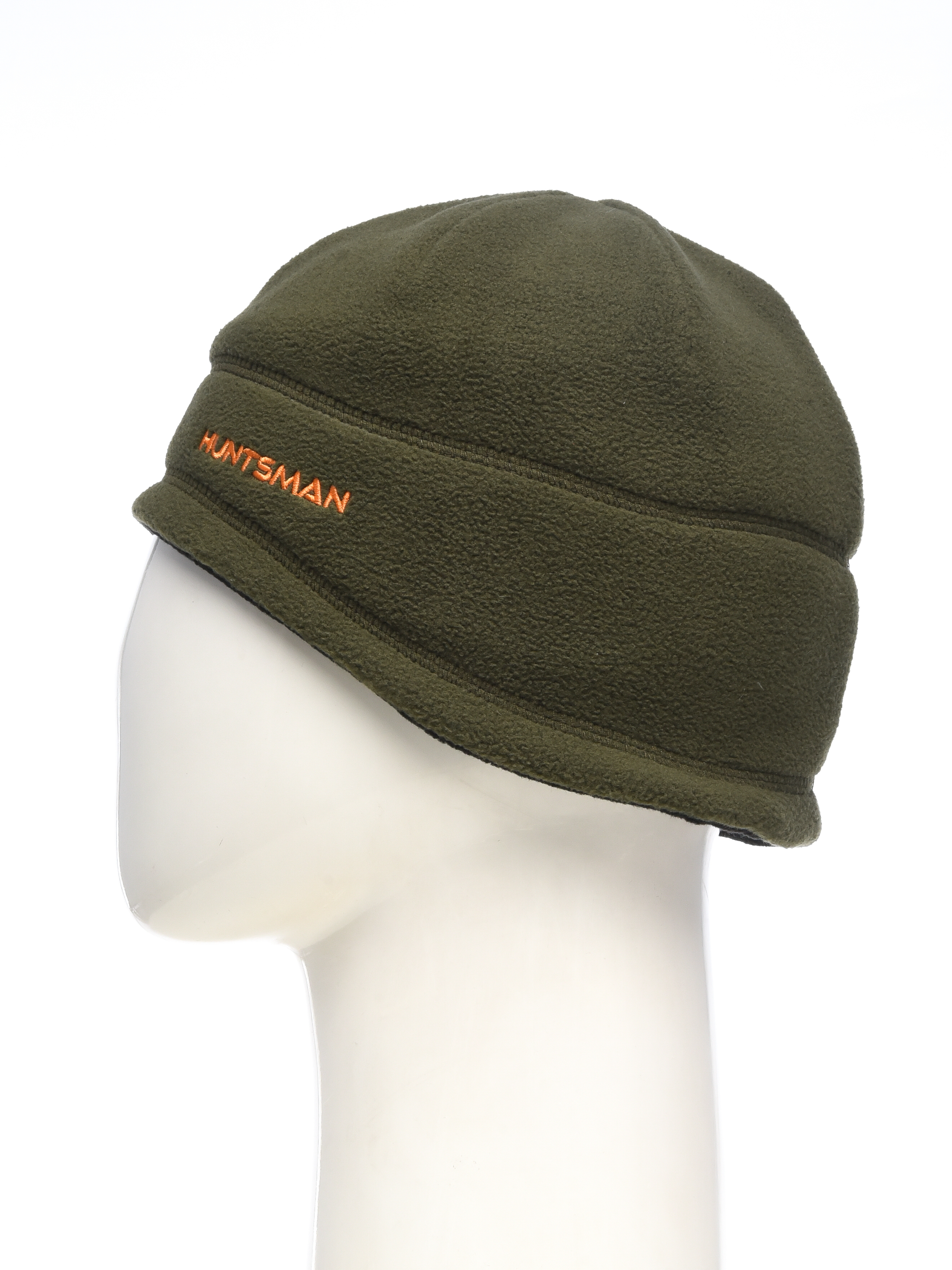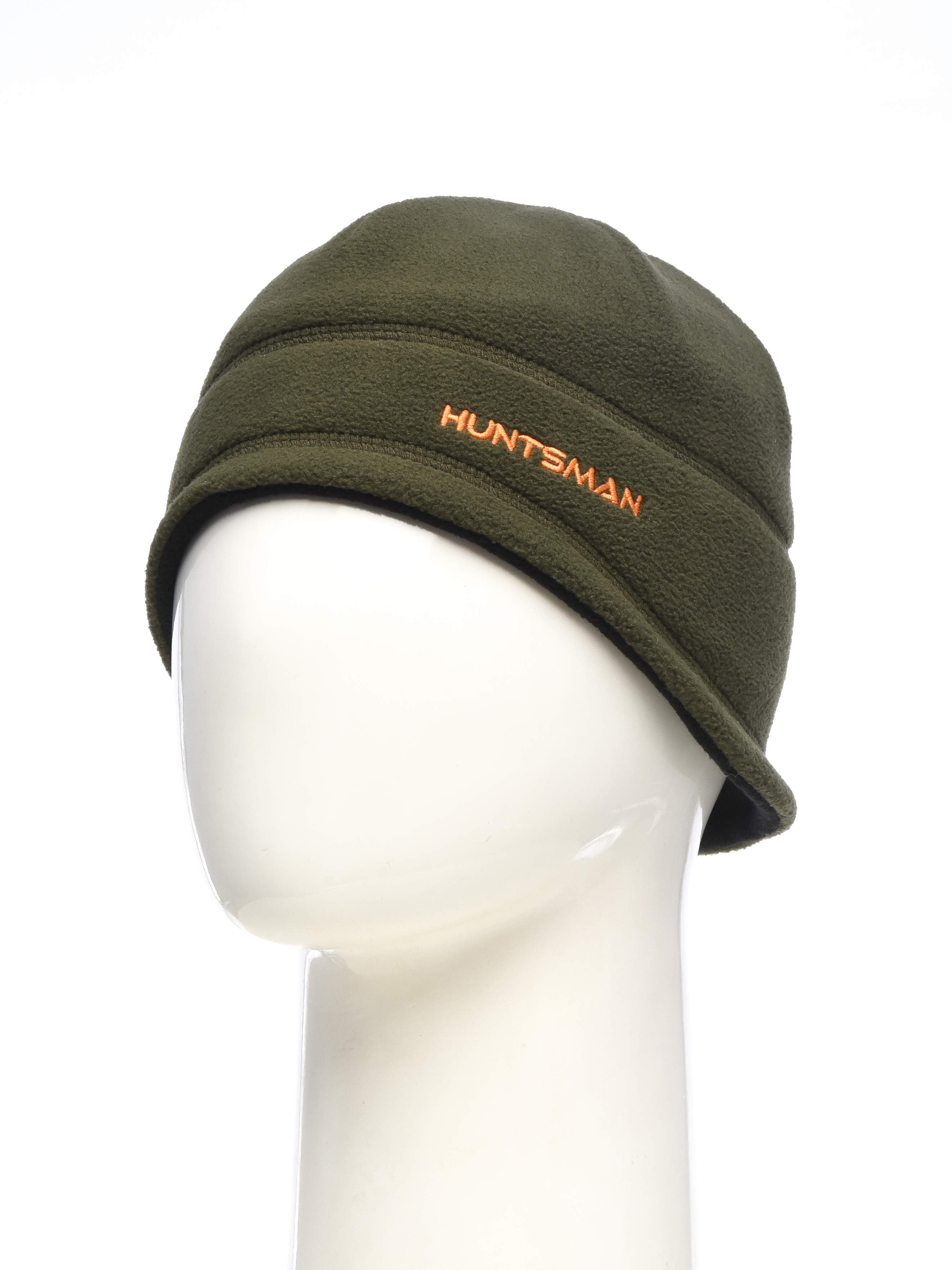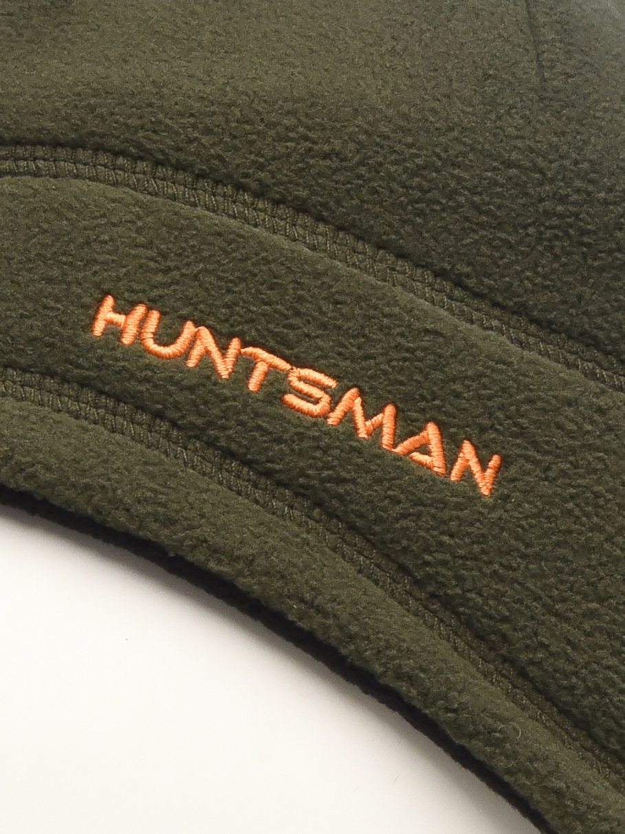 Флисовая двухстороння шапка, изнаночная сторона выполнена в сигнальной расцветке, что может быть полезно на зимней охоте.