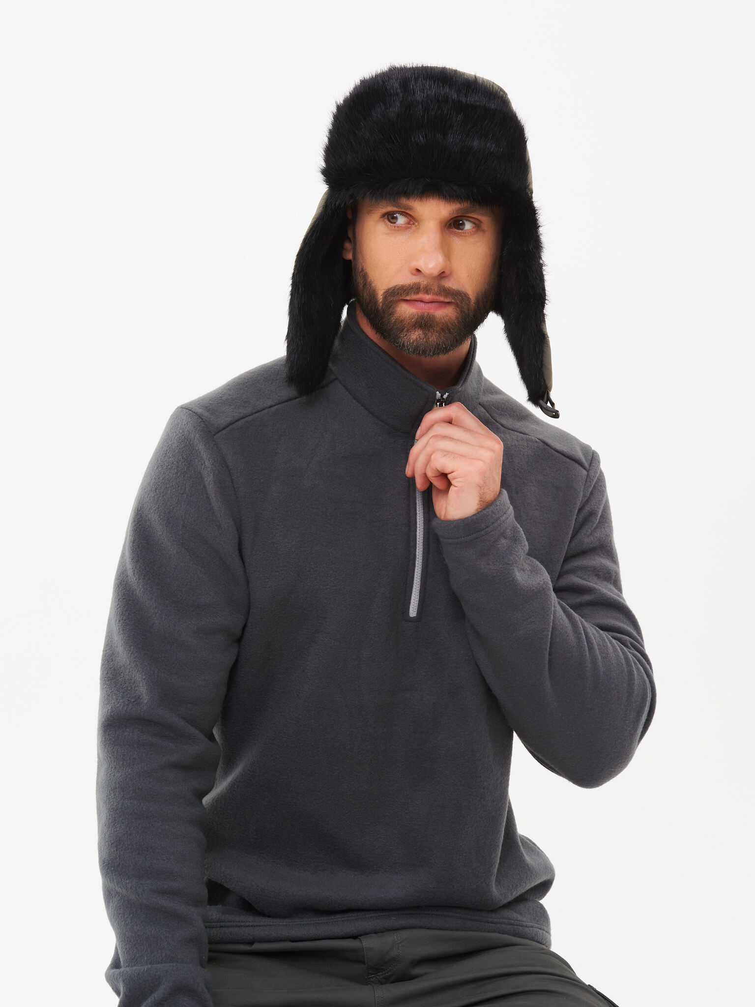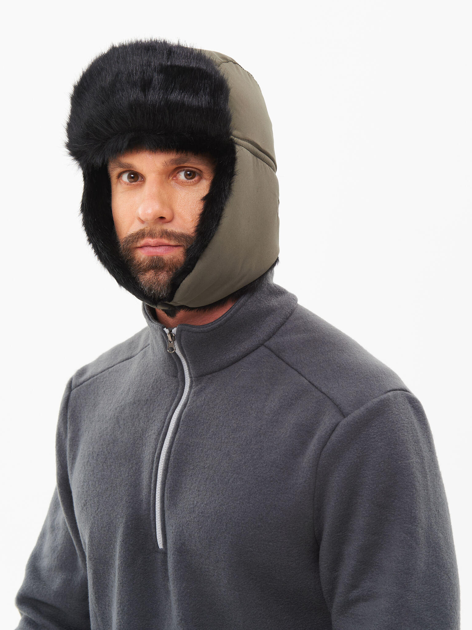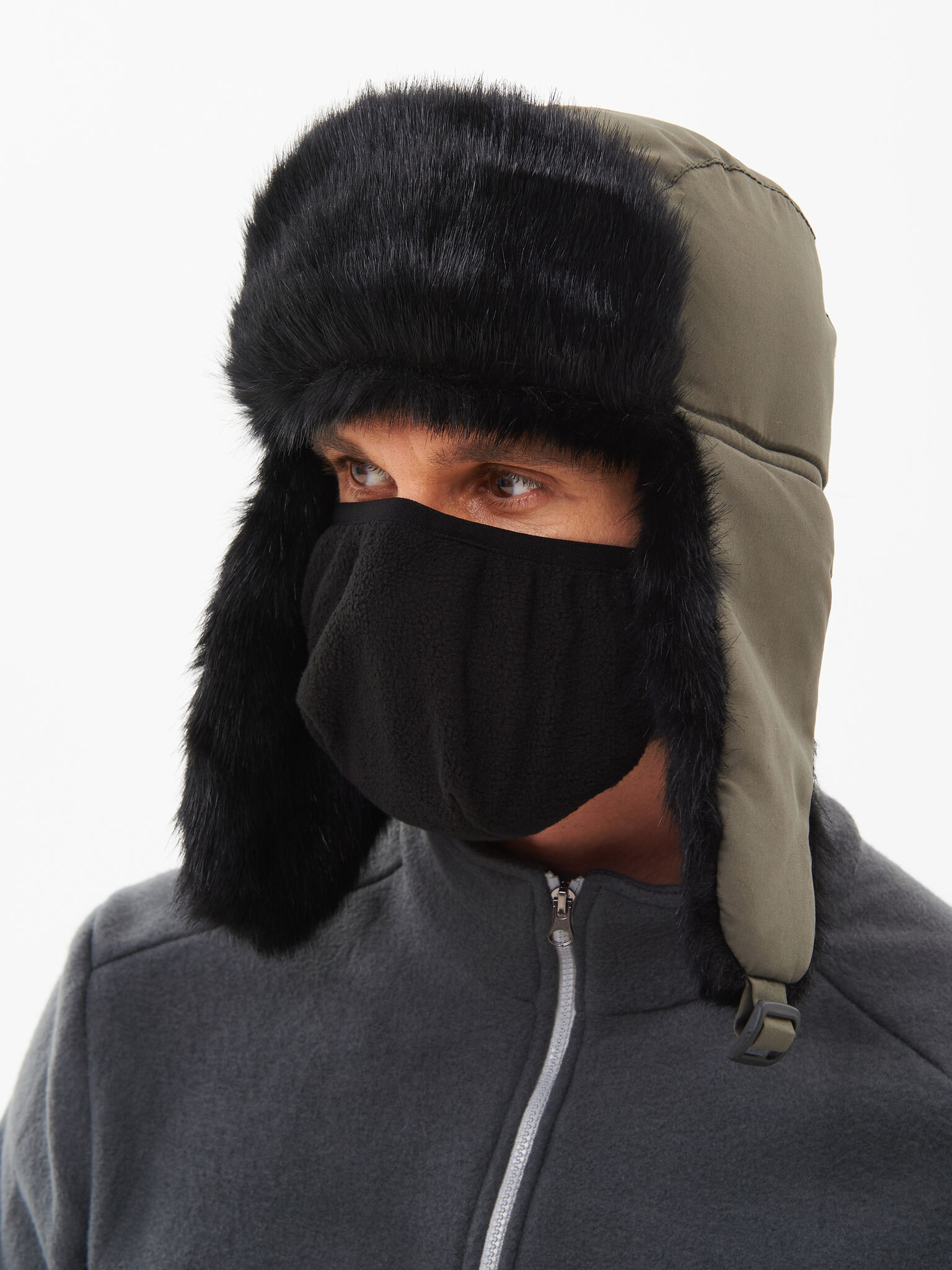 Зимняя шапка с искусственным мехом и ветрозащитной маской.